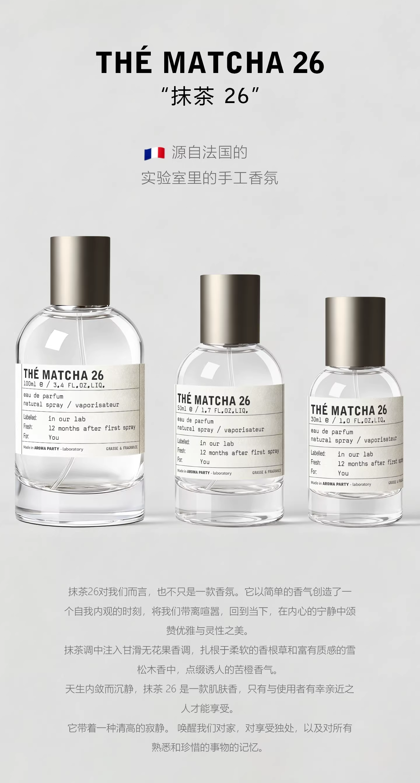 實驗室香水THÉMATCHA26女士淡香水小眾抹茶香水節假日約會定製款