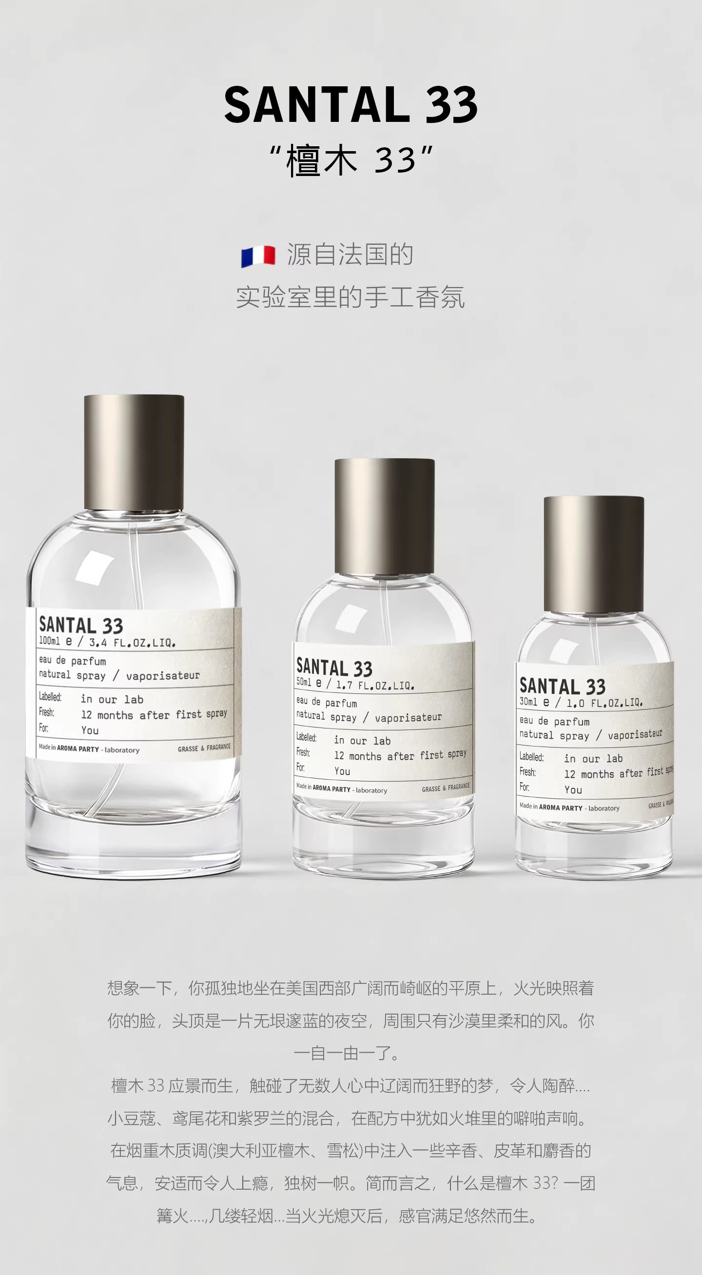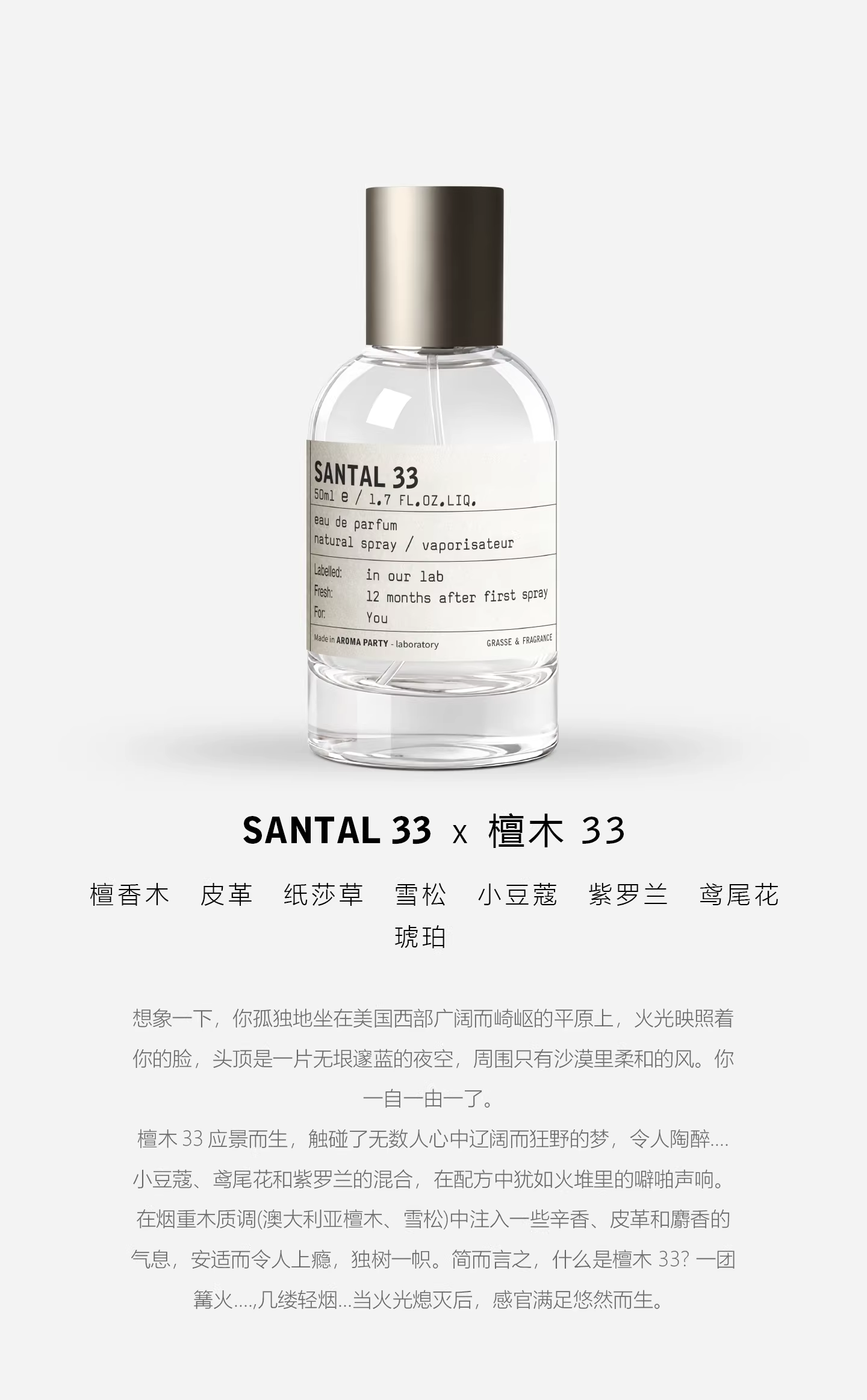 香水實驗室SANTAL33持久淡香女士香水小眾檀木33節假日約會定製款
