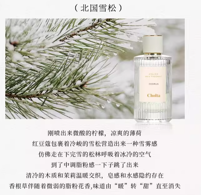 Cholta香水北國雪松煙雨茉莉木蘭詩語漫境橡野仙境紙莎草花園正裝