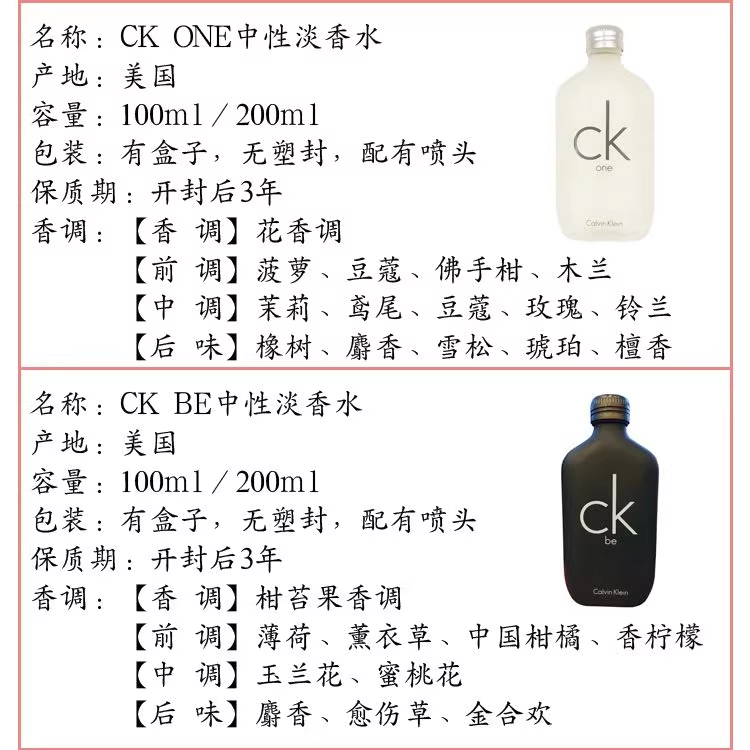 CK one be中性淡香水男士女士清新持久100ml