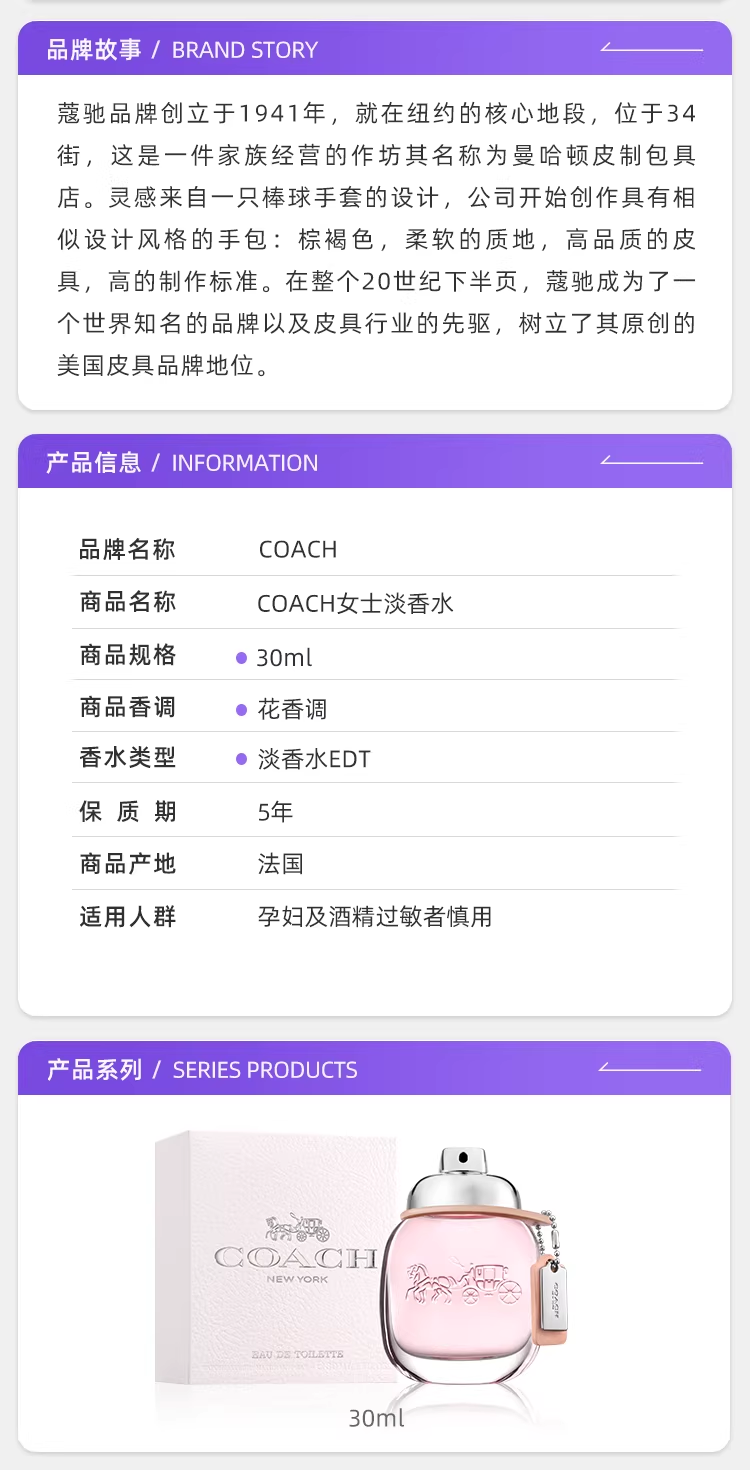 COACH 蔻馳同名女士淡香水30ml女士