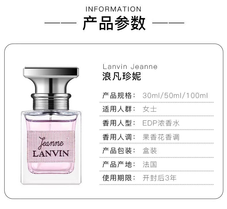 Lanvin浪凡珍妮女士jeanne香水淡香精30ml清新甜美花果調少女心