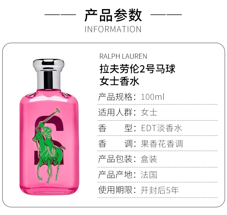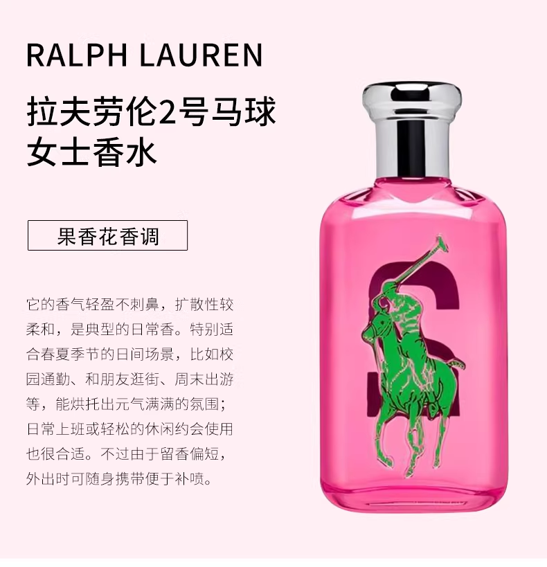 RALPH LAUREN拉夫勞倫2號馬球女士淡香水EDT100ML果香花香調